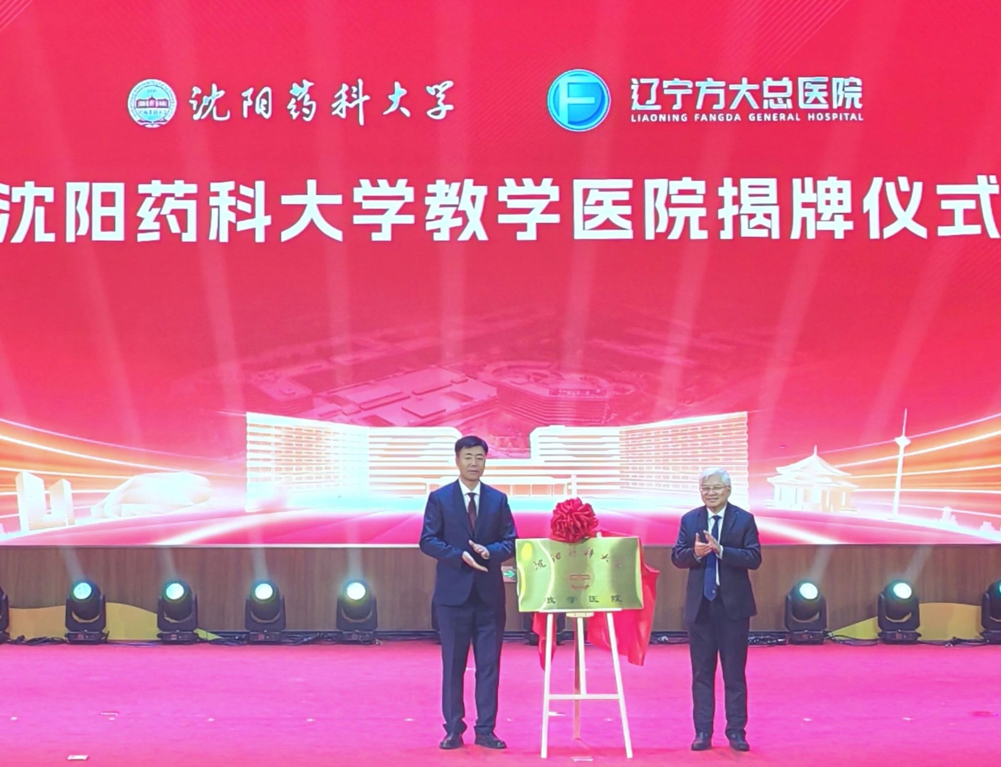 路金才与杨福全共同为沈阳药科大学教学医院揭牌并代表双方签署沈阳药科大学教学医院共建协议。