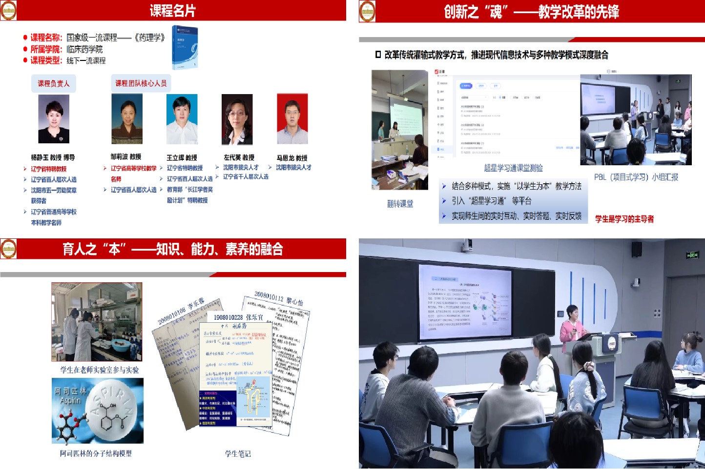 课程建设以“育人”为核心,将学生从被动的知识接收者转变为主动的知识探究者和问题解决者。课程构建了“线上SPOC+线下翻转课堂/研讨”的新型教学模式,依托“智慧树”等平台实现数字技术与教学的深度融合,将课堂真正释放给学生。课程全面推进“课程思政”建设,通过讲述我国药典发展史、介绍“四个最严”监管要求、讲解我校科研成果在世界药品质量控制领域的贡献等,将知识培养与价值引领同向同行,强化学生的文化自信与责任担当,2024年获批辽宁省首批课程思政示范课程。
